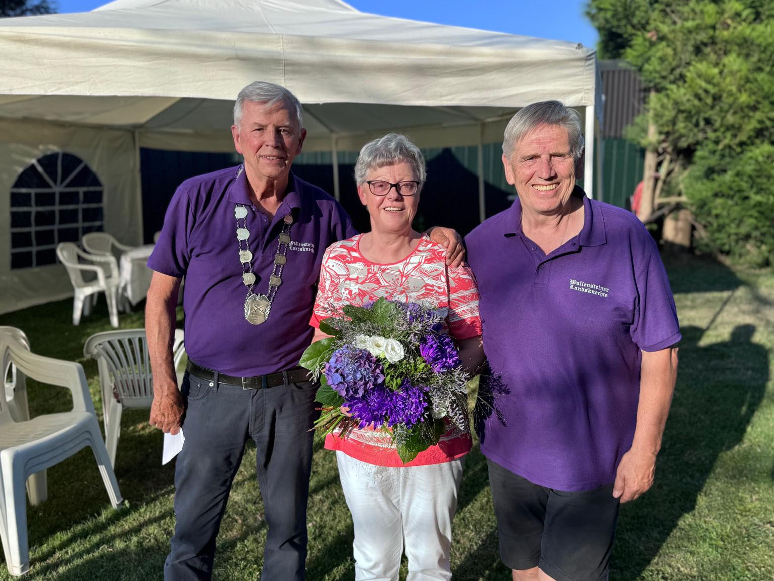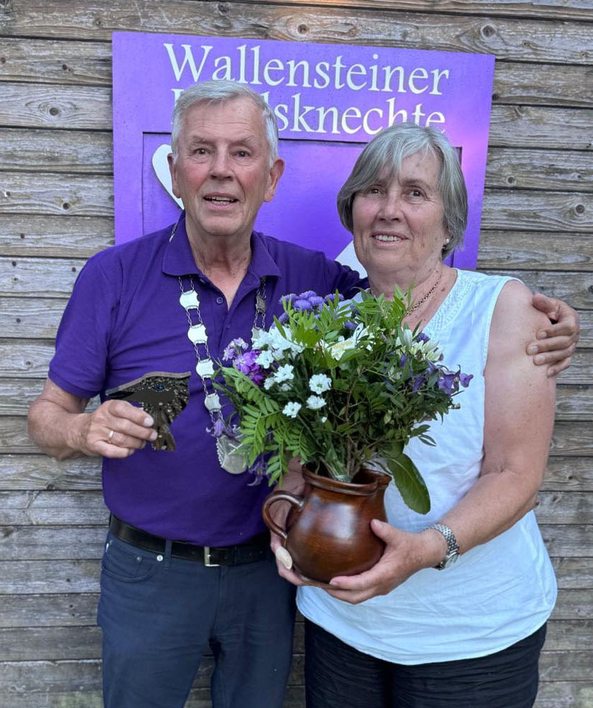 Der neue König und Adjutant der Wallensteiner Peter Mertens bedankt sich bei Monika und Karl Theo Wellmann für die Ausrichtung des Königsabschiedsfestes